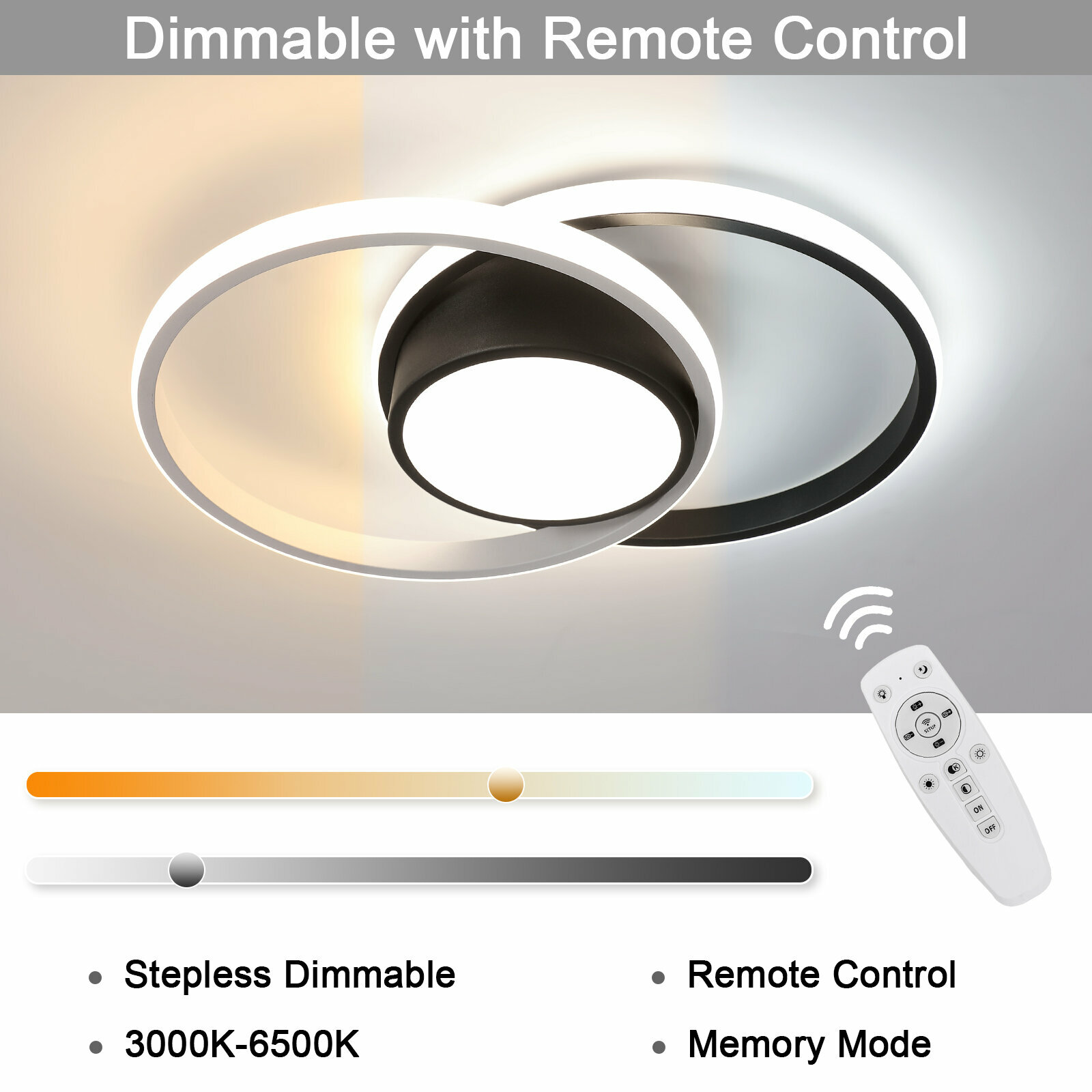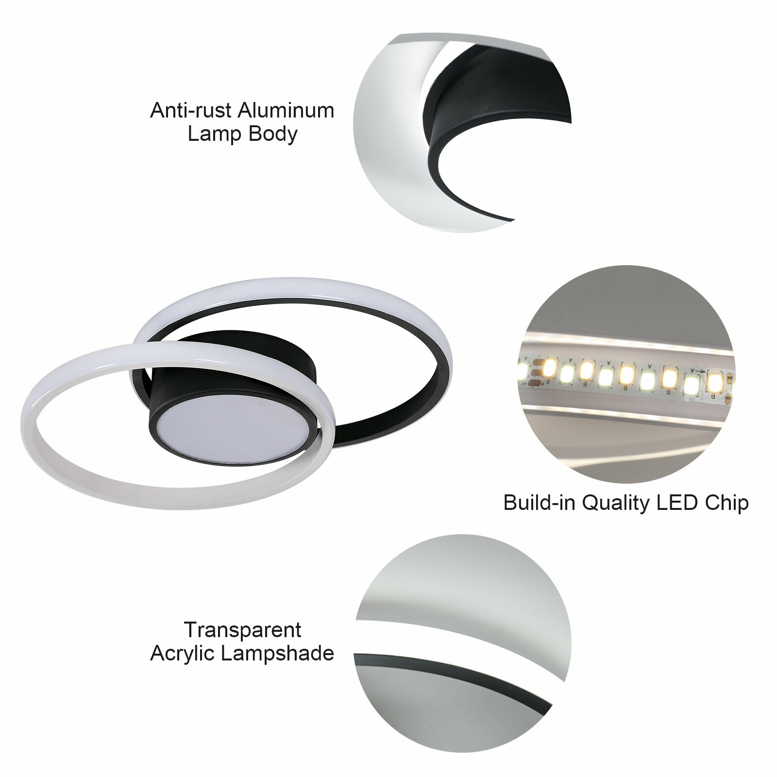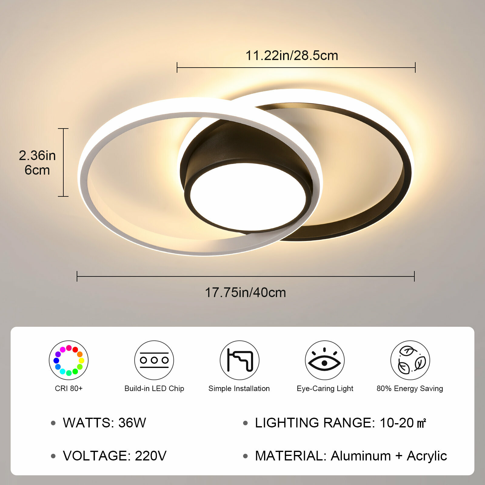 Потолочный светильники,Riserva,RI308727,Двойной круг, черный, белый свет, 32 Вт