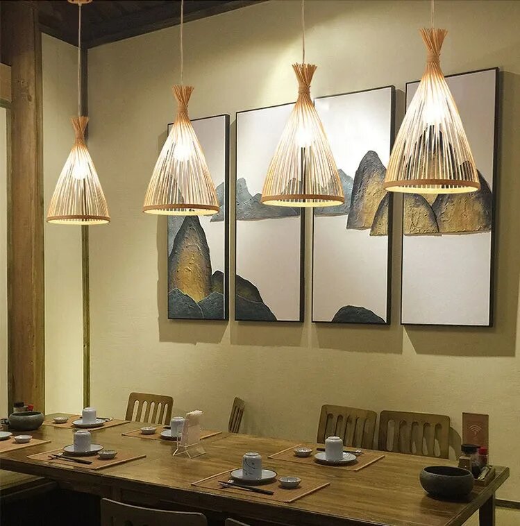 Плетеный бамбуковый подвесной светильник, 26x26cm