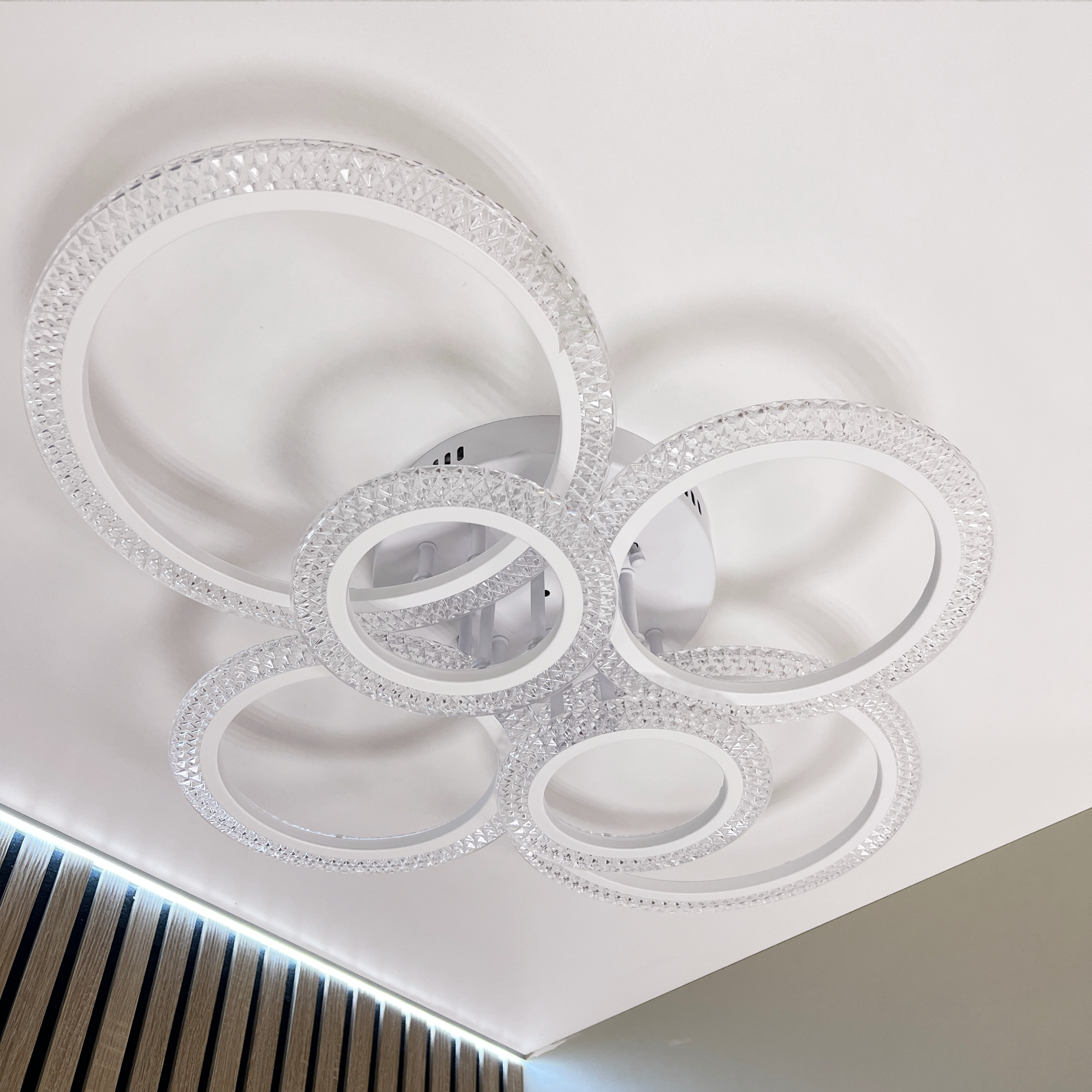 Люстра потолочная светодиодная с пультом RGB, 107 Вт, белая, цветок, на кухню, гостиную, спальню,
