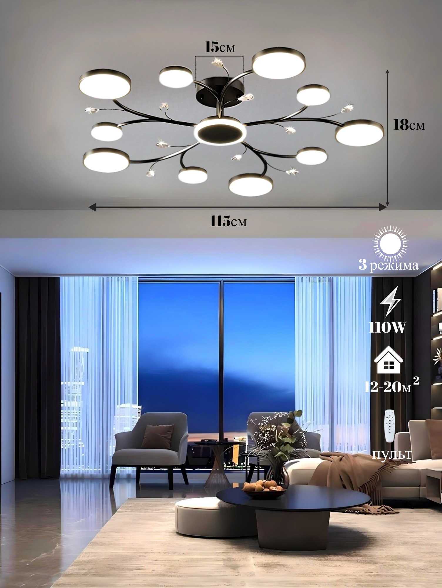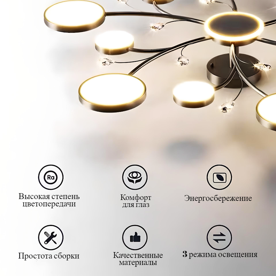 СохранитьПотолочная светодиодная люстра "Light Edem" для кухни и гостиной, 110W с пультом интересное: