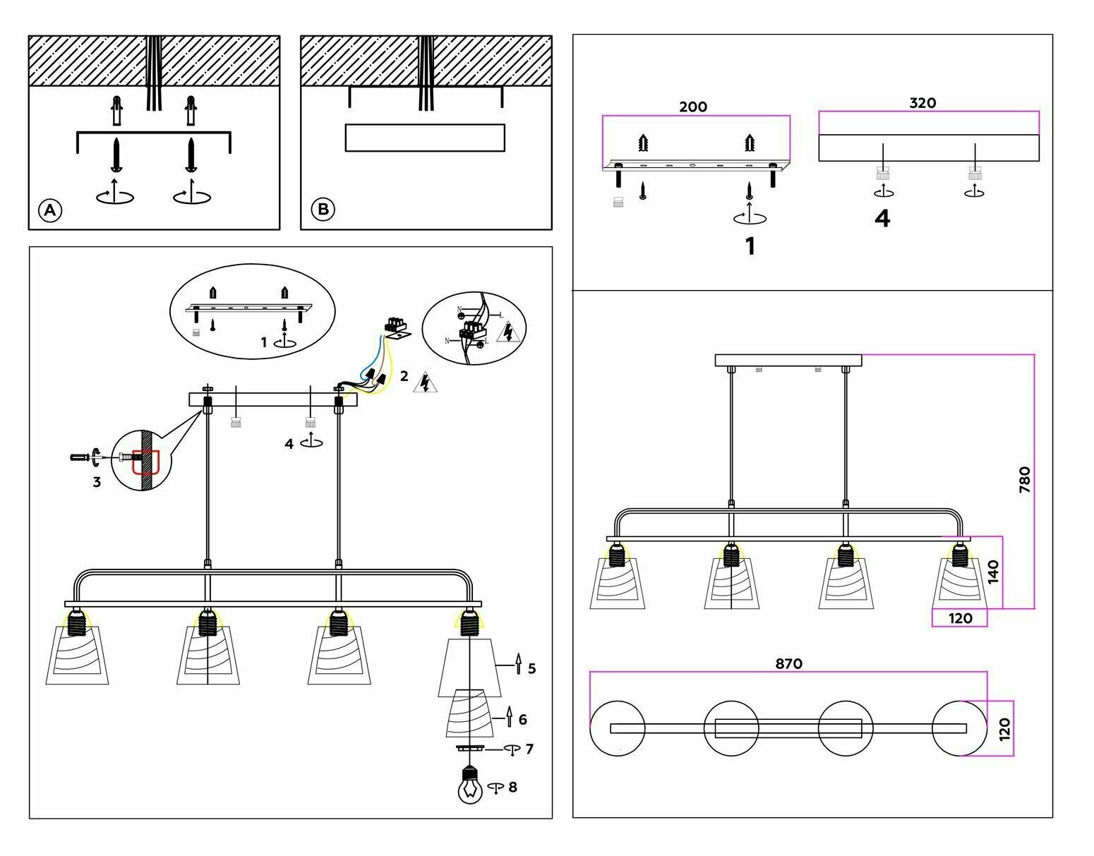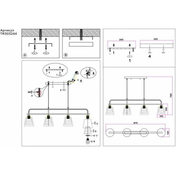 | Особенности | возможность подключения диммера / каскадная / лампы в комплекте / паук / подсветка / прозрачный плафон / регулировка по высоте / с абажуром |