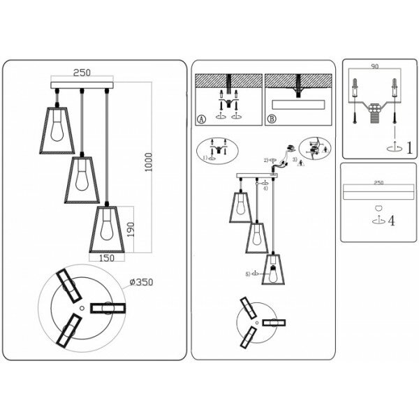 | Особенности | возможность подключения диммера / каскадная / лампы в комплекте / паук / подсветка / прозрачный плафон / регулировка по высоте / с абажуром |