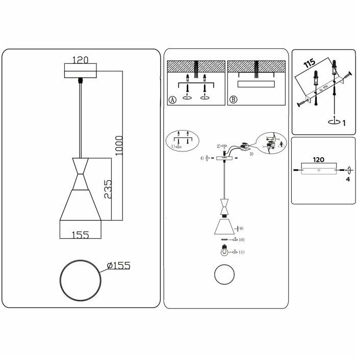 | Тип цоколя | E14 / E27 / G10 / G53 / G9 / GU10 / GU5.3 / GX53 / встроенный светодиодный светильник (LED) |