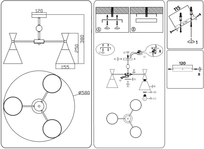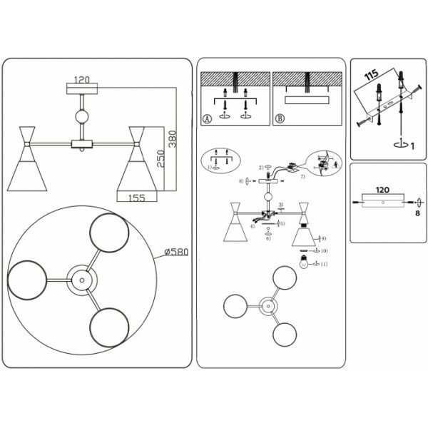 | Особенности | возможность подключения диммера / каскадная / лампы в комплекте / паук / подсветка / прозрачный плафон / регулировка по высоте / с абажуром |