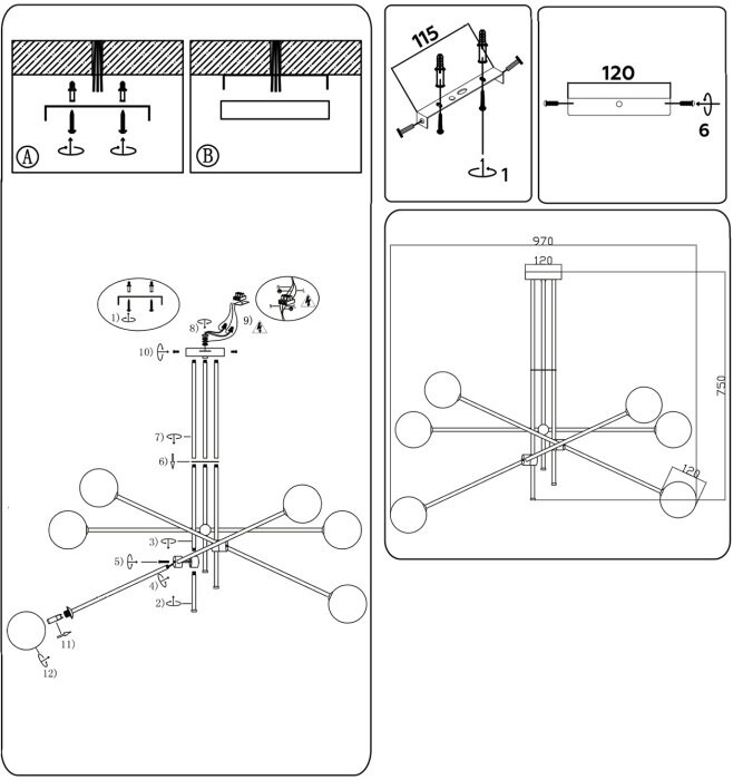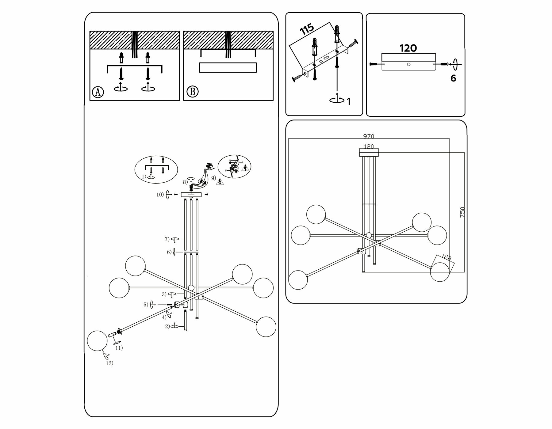 Подвесной светильник в стиле лофт Ambrella Light Traditional TR8132/6 BK черный E27*6 max 40W D700*800