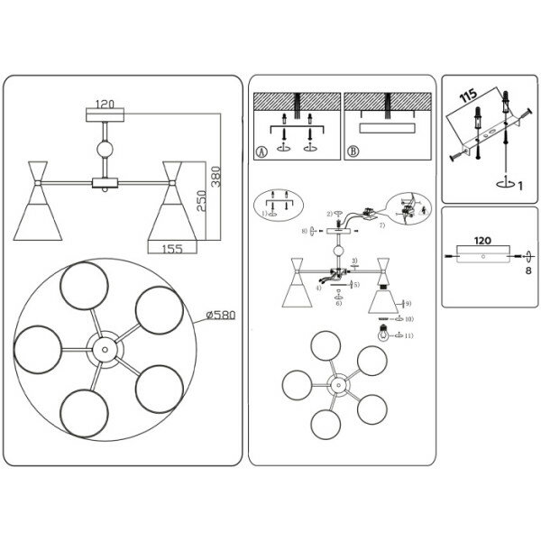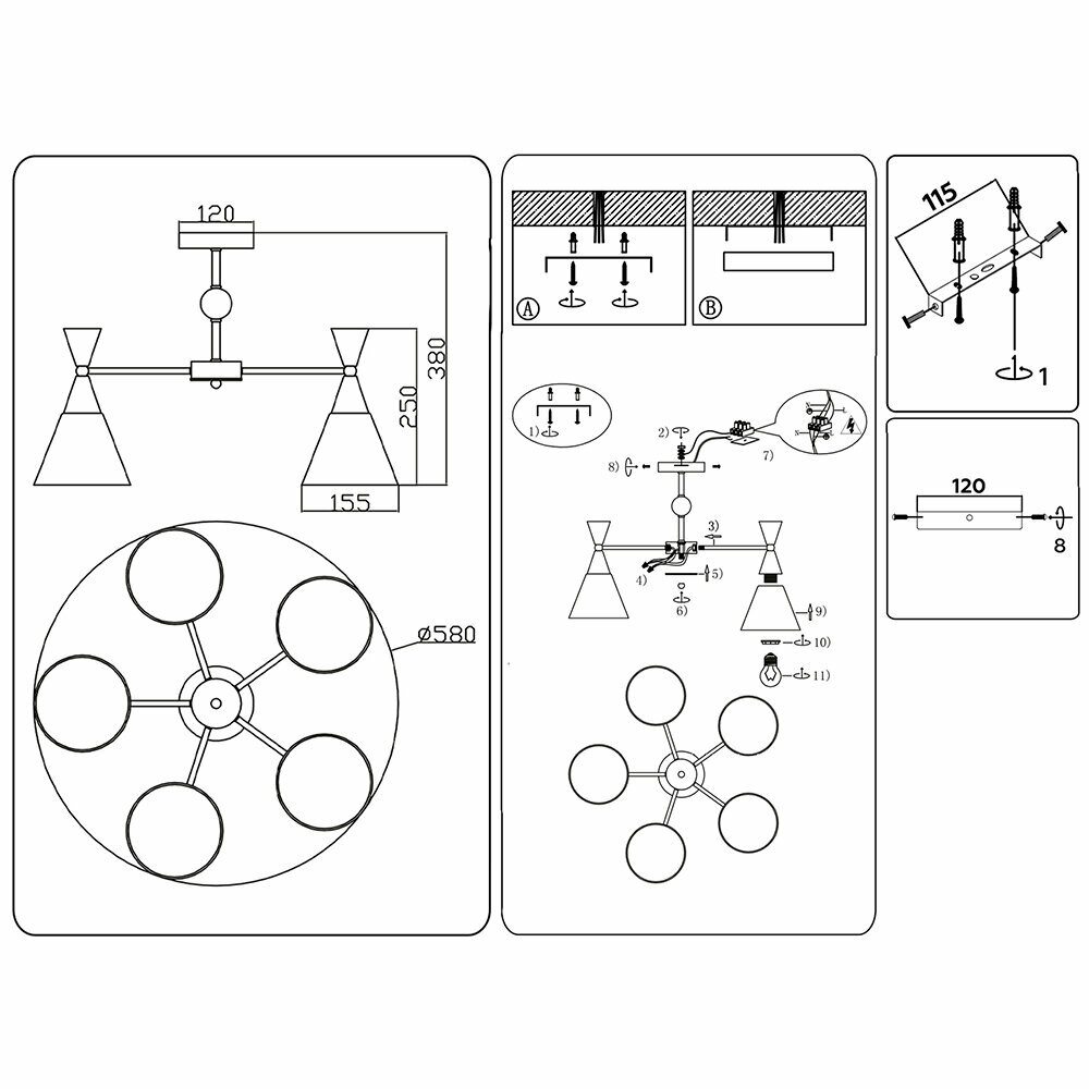 | Особенности | возможность подключения диммера / каскадная / лампы в комплекте / паук / подсветка / прозрачный плафон / регулировка по высоте / с абажуром |