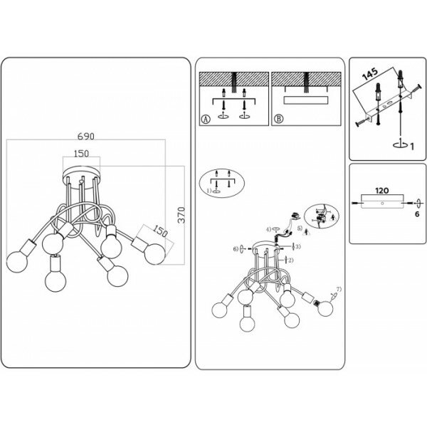 Подвесной светильник в стиле лофт Ambrella Light Traditional TR8132/6 BK черный E27*6 max 40W D700*800