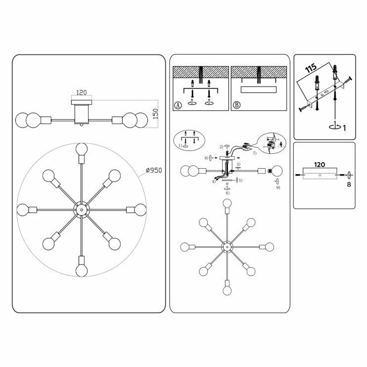 | Тип цоколя | E14 / E27 / G10 / G53 / G9 / GU10 / GU5.3 / GX53 / встроенный светодиодный светильник (LED) |