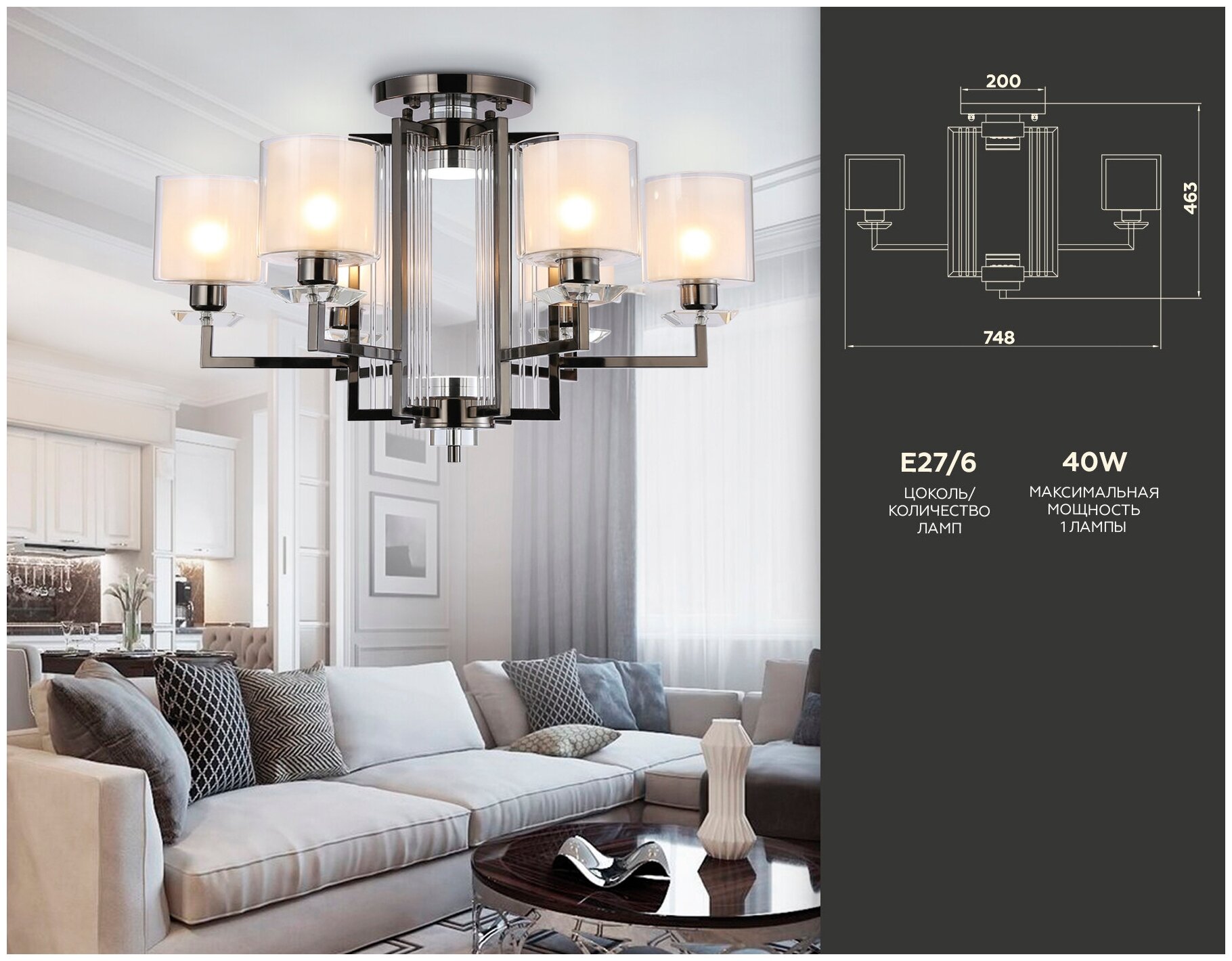 | Особенности | возможность подключения диммера / каскадная / лампы в комплекте / паук / подсветка / прозрачный плафон / регулировка по высоте / с абажуром |