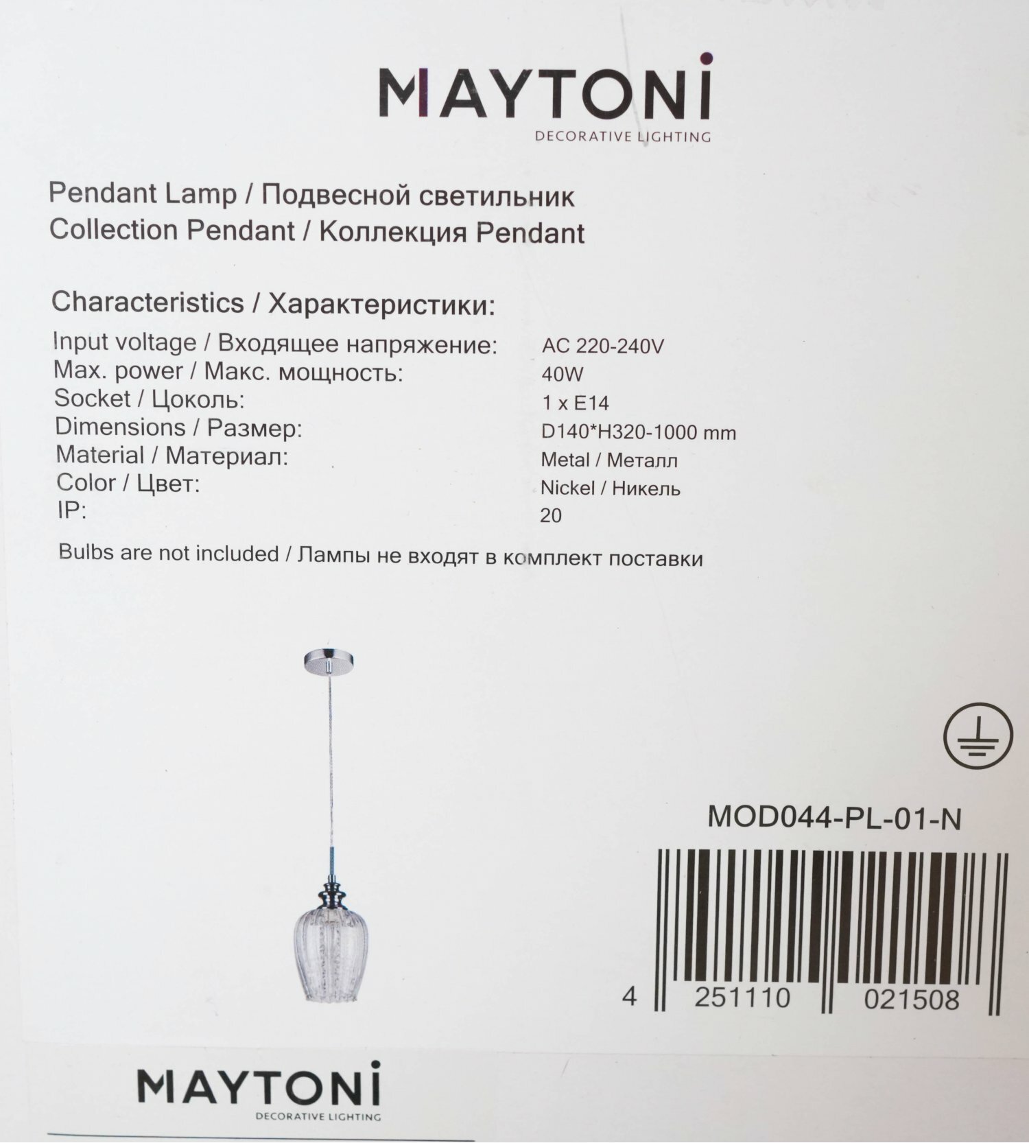 Подвесной светильник Maytoni MOD044-PL-01-N_MY, E14, 40 Вт, металл, стекло, хрусталь, никель