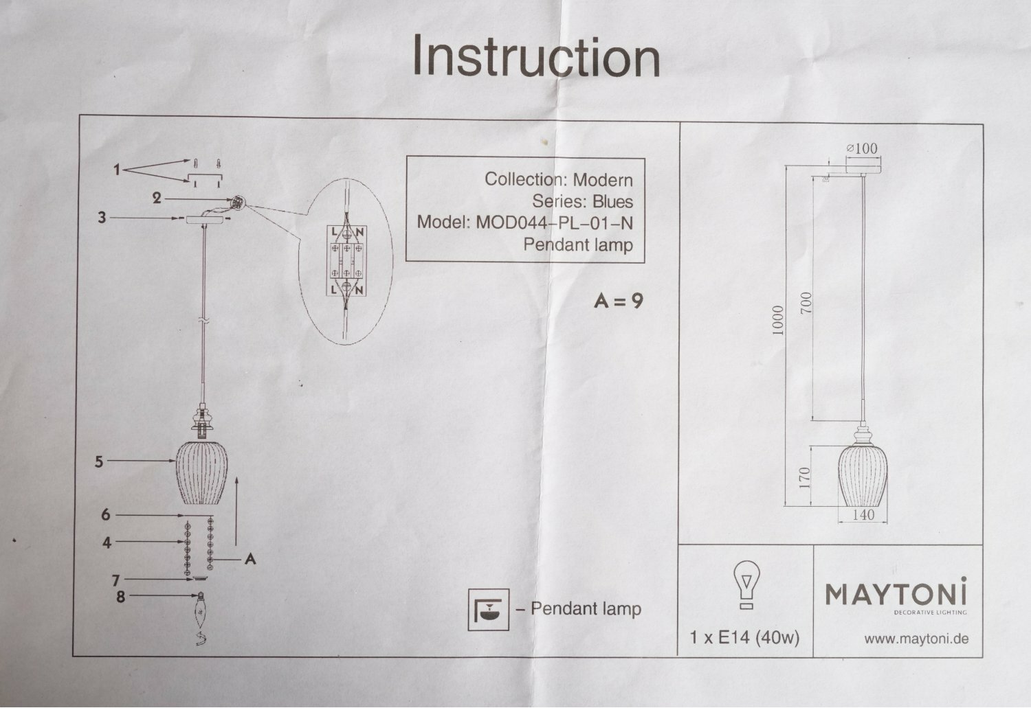 Подвесной светильник Blues MOD044-PL-01-N Maytoni интересное: