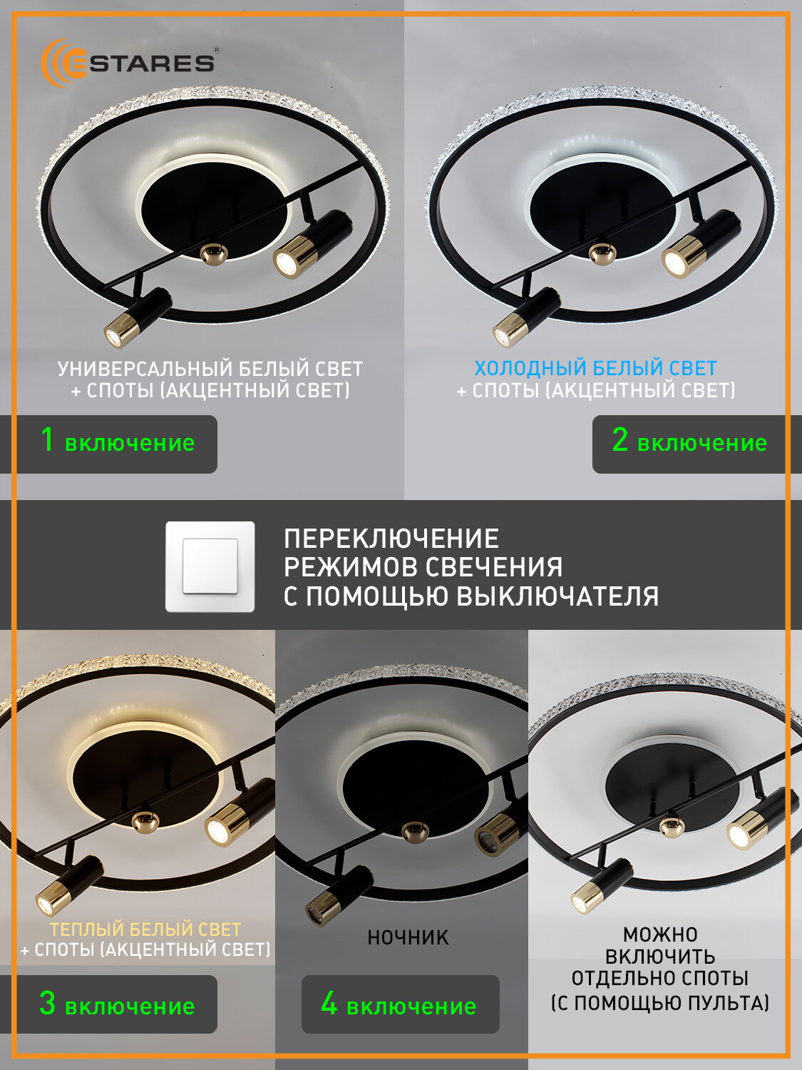 Управляемая потолочная светодиодная LED люстра Estares SIRENA с пультом и телефоном 56 Вт интересное:
