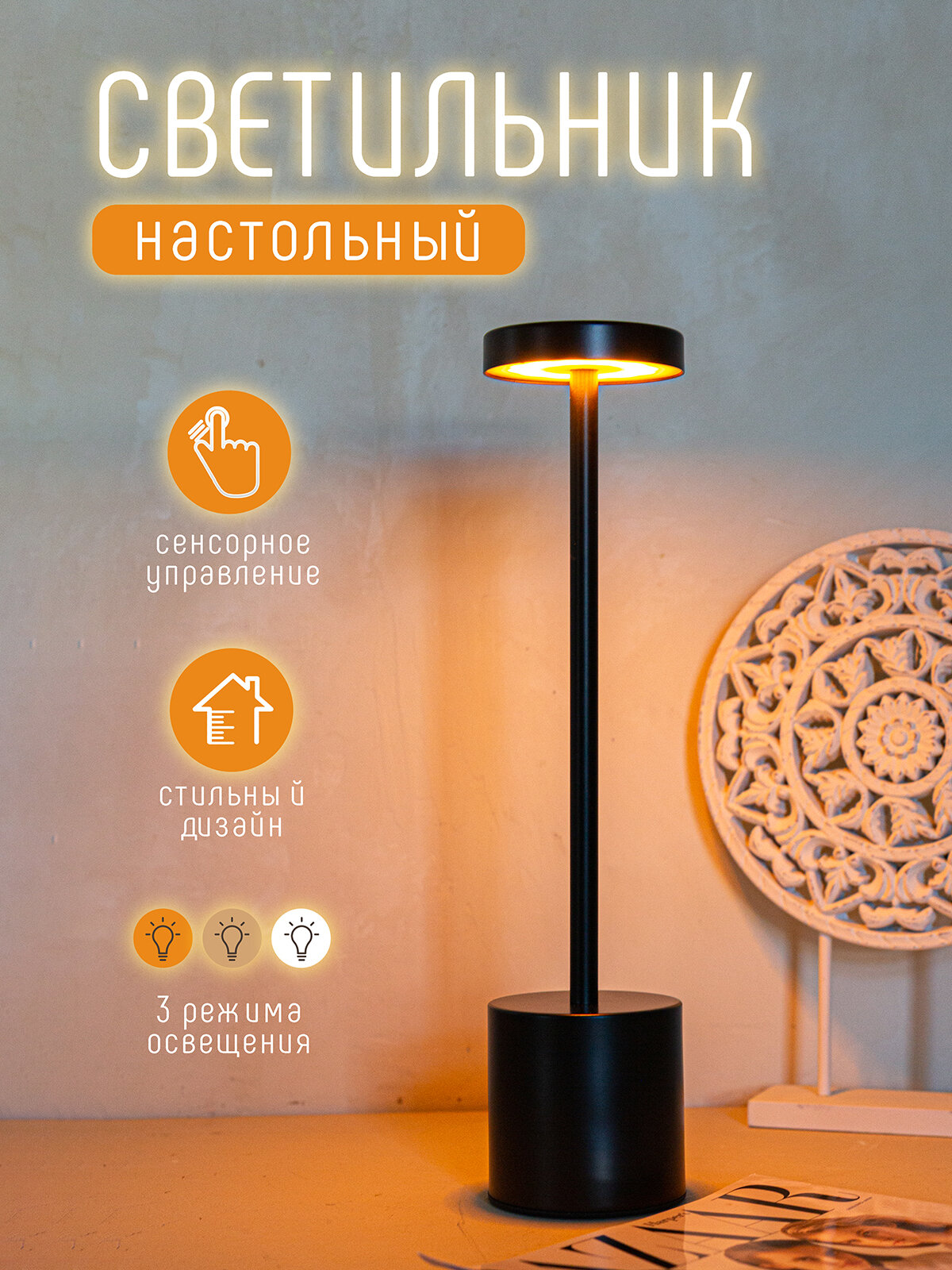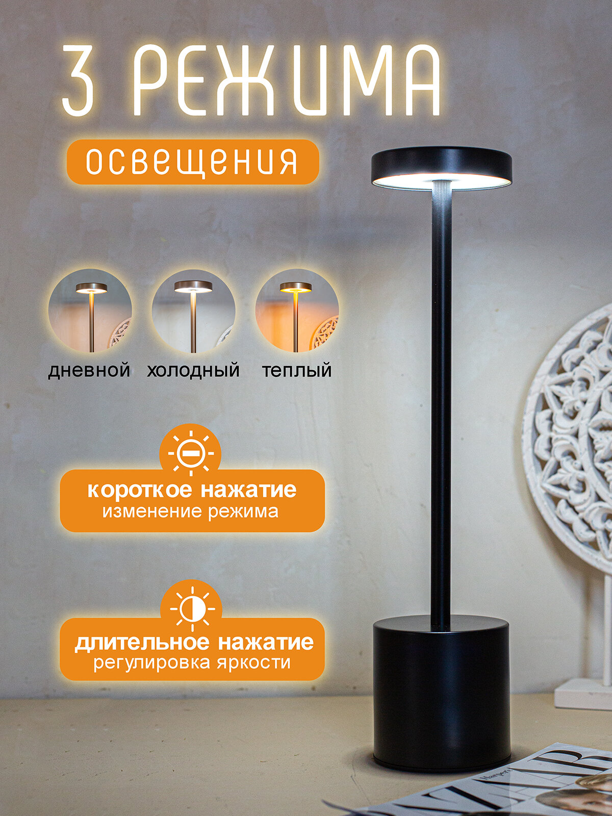 СохранитьСветильник настольный светодиодный беспроводной, торшер интерьерный, лампа LD сенсорная, цвет черный интересное: