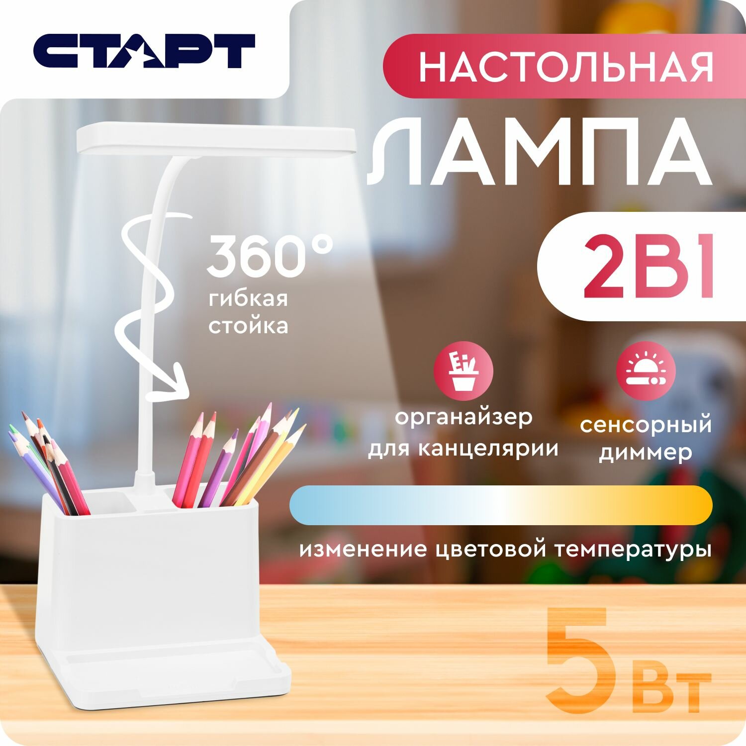 Светильник настольный Старт Ct91, 12Вт, 500Лм, 3000-6000K, 1.5м, белый 4610116217252