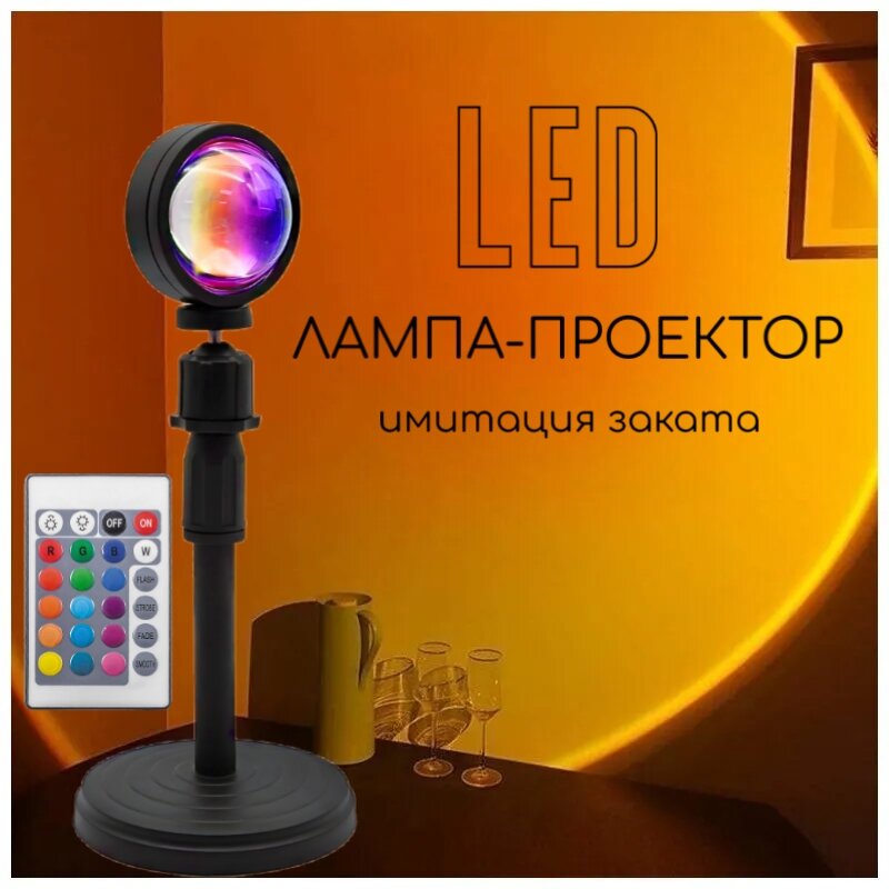 Светодиодный Атмосферный Светильник настольная LED Лампа Проектор Заката Sunset Lamp для Фото и светотерапии, лампа закат, Цвет Солнце интересное: