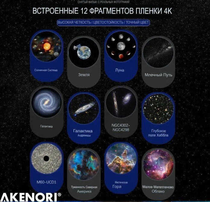 Светодиодный проектор звездного неба AKENORI PG-2000 домашний планетарий интересное: