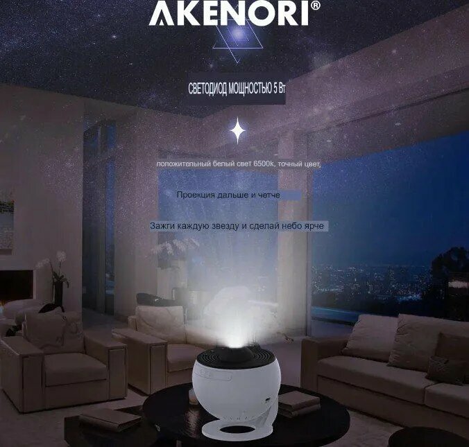 | Дополнительная информация | Если вы хотите создать уютную атмосферу в вашем доме и добавить немного романтики, то светодиодный проектор AKENORI PG-2000 – это идеальное решение; он не только создает эффект звездного неба, но и обеспечивает комфортное освещение. |