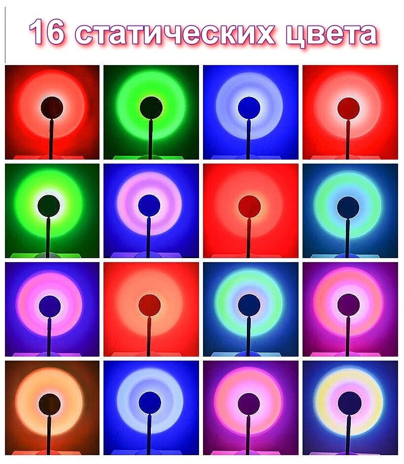 Цветная rgb лампа "Закат" с пультом для фото и атмосферы, настольный декоративный светильник светодиодный (16 цветов) интересное:
