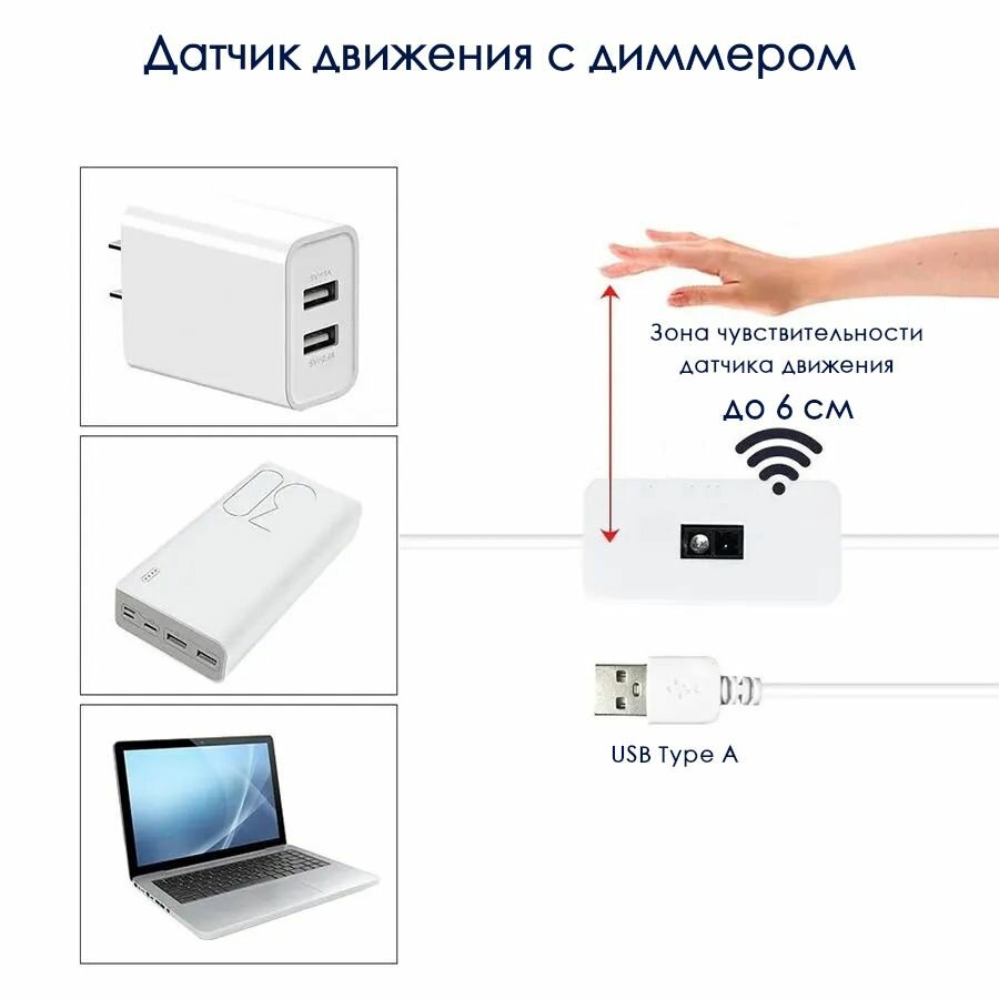 Светодиодный светильник с датчиком движения лента 3м с диммером, холодный белый свет, подсветка для телевизора, кухни, питание 5В от USB интересное:
