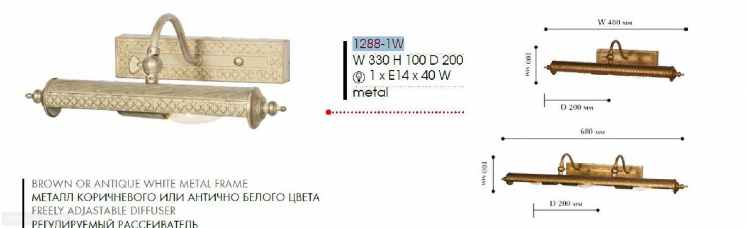 1288-1W, настенный светильник, D200xW330xH100, 1xE14x40W, excluded интересное: