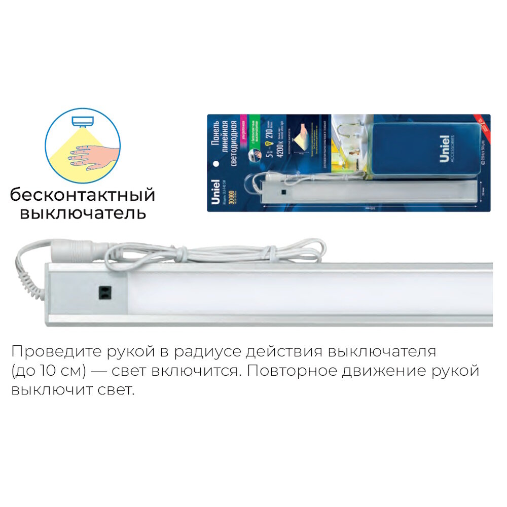 Uniel Мебельный светодиодный светильник (UL-00002883) Uniel ULI-F41-5,5W/4200K/DIM Sensor IP20 Silver