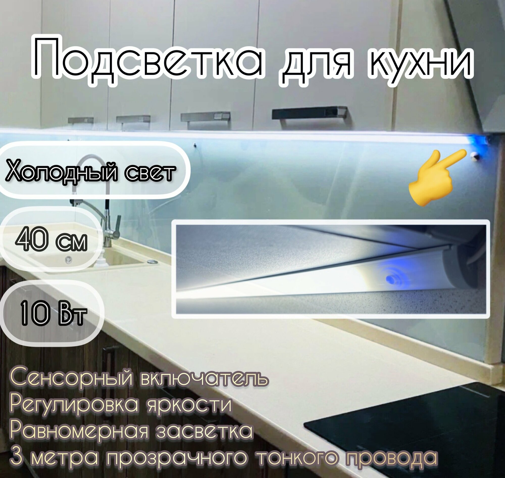 Купить Подсветка для кухни 40 см, сенсорная с возможностью регулировки яркости, Мощность 10Вт. Холодный белый 6000К. Комплект