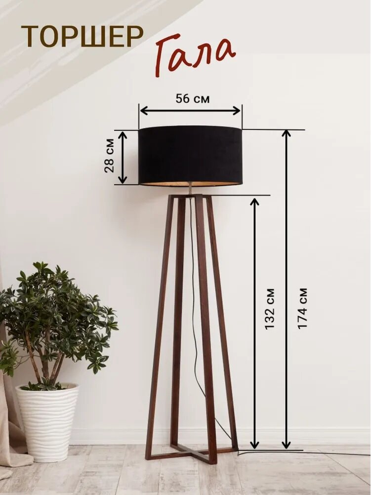 Светильник напольный/ Торшер "Гала"/ Светильник интерьерный/ основание светло-коричневое, черный абажур