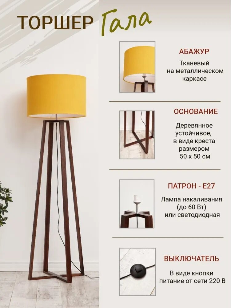 Купить Светильник напольный/ Торшер "Гала"/ Светильник интерьерный/ основание коричневое, желтый абажур