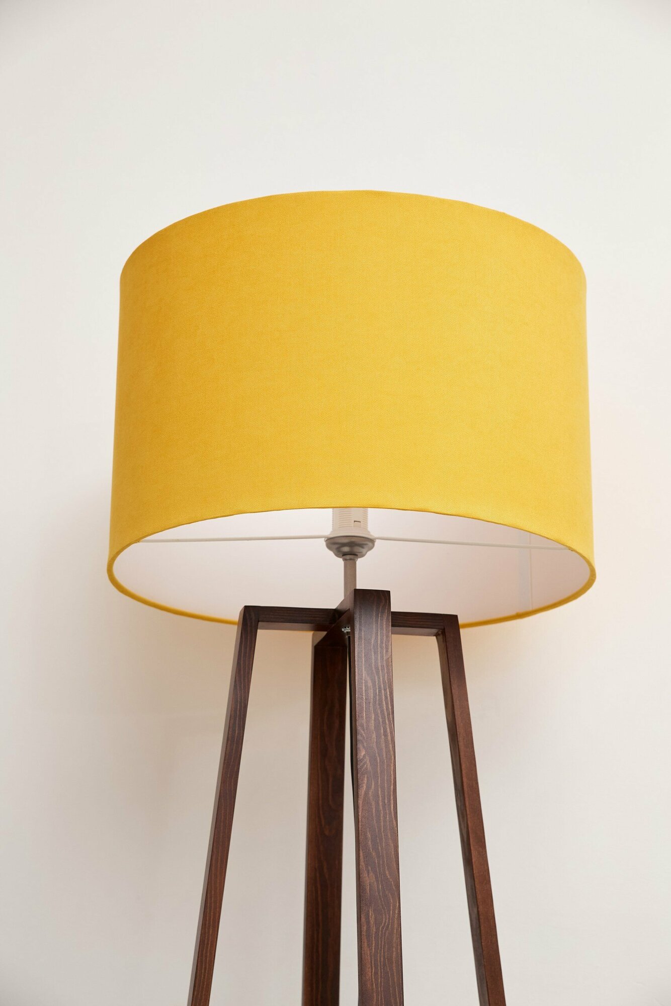 СохранитьСветильник напольный/ Торшер "Гала"/ Светильник интерьерный/ основание коричневое, желтый абажур интересное: