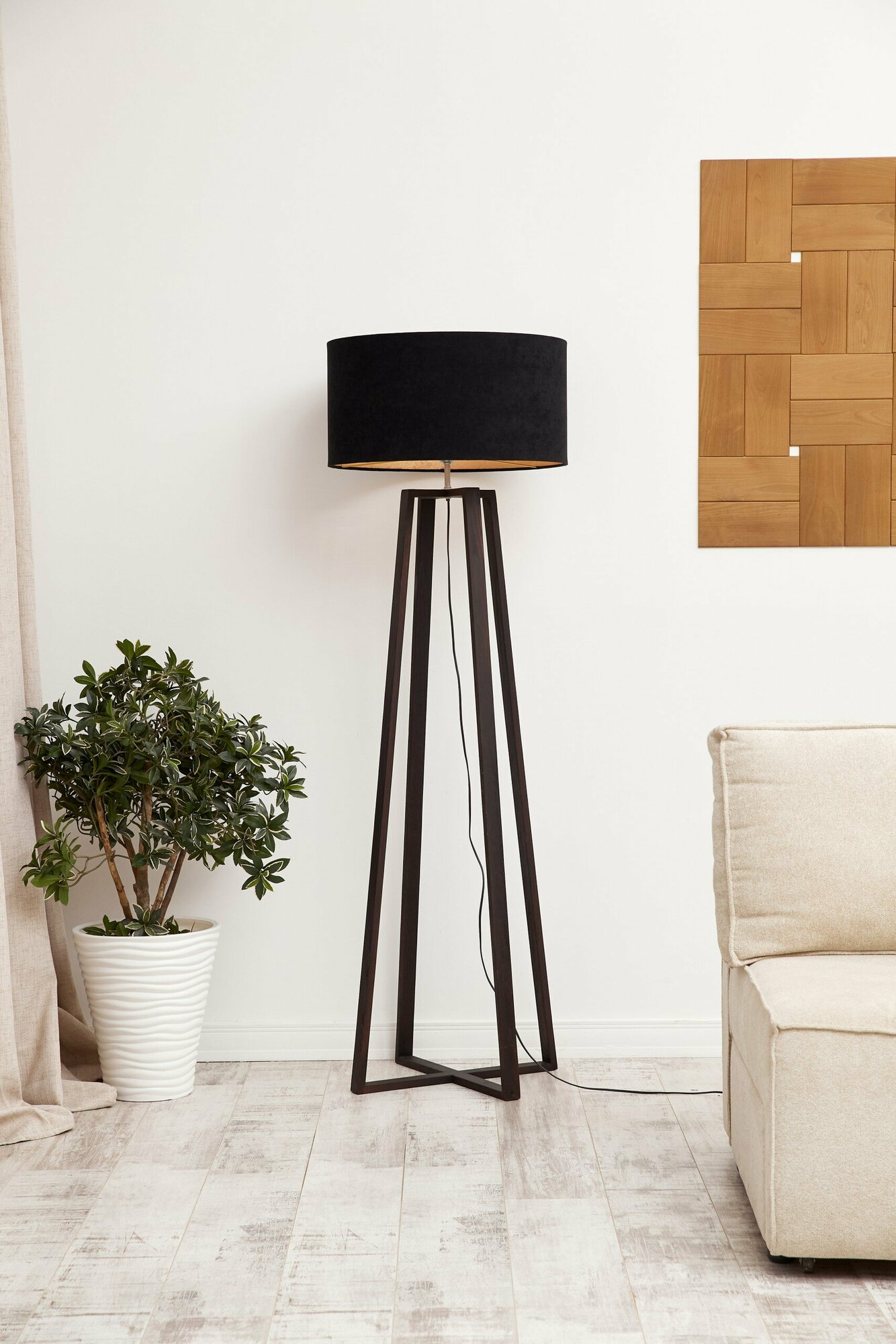 Светильник напольный/ Торшер "Гала"/ Светильник интерьерный/ основание светло-коричневое, черный абажур