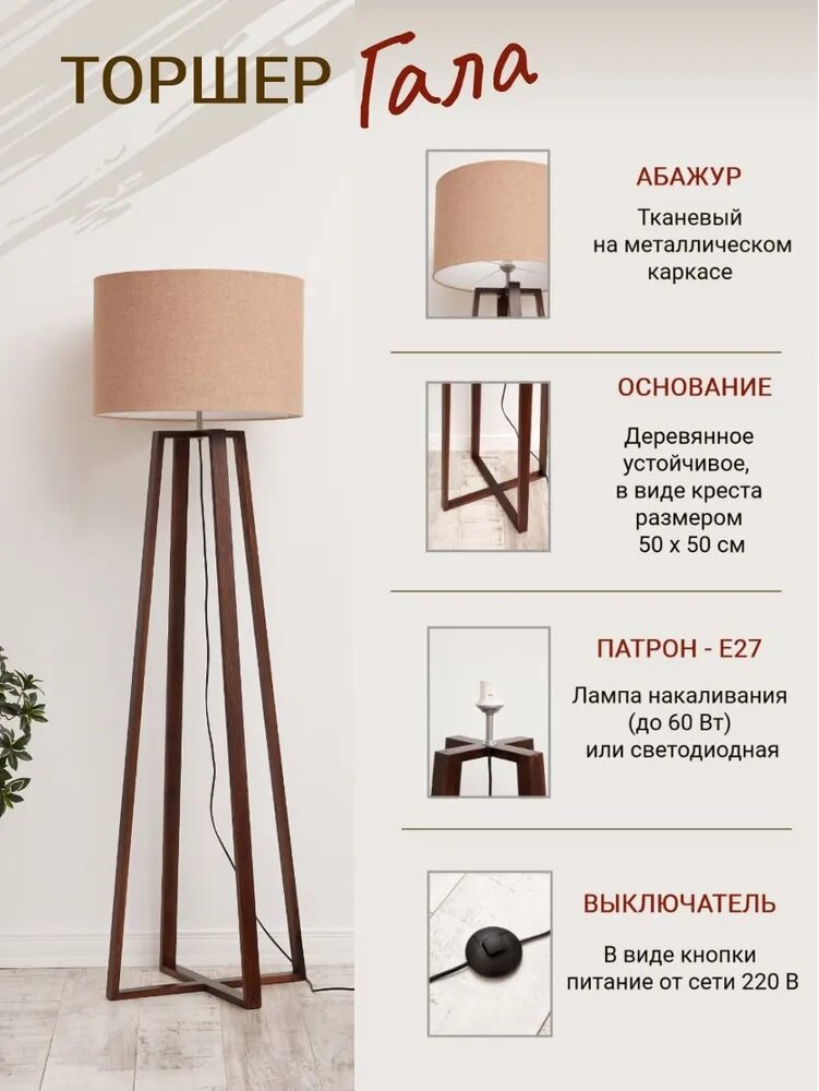 Купить Светильник напольный/ Торшер "Гала"/ Светильник интерьерный/ основание коричневое, бежевый абажур