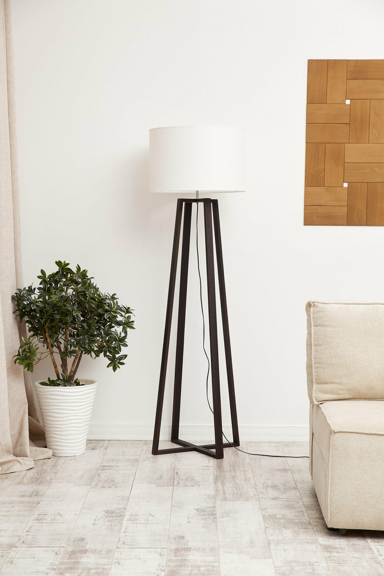 СохранитьСветильник напольный/ Торшер "Гала"/ Светильник интерьерный/ основание темно-коричневое, белый абажур интересное: