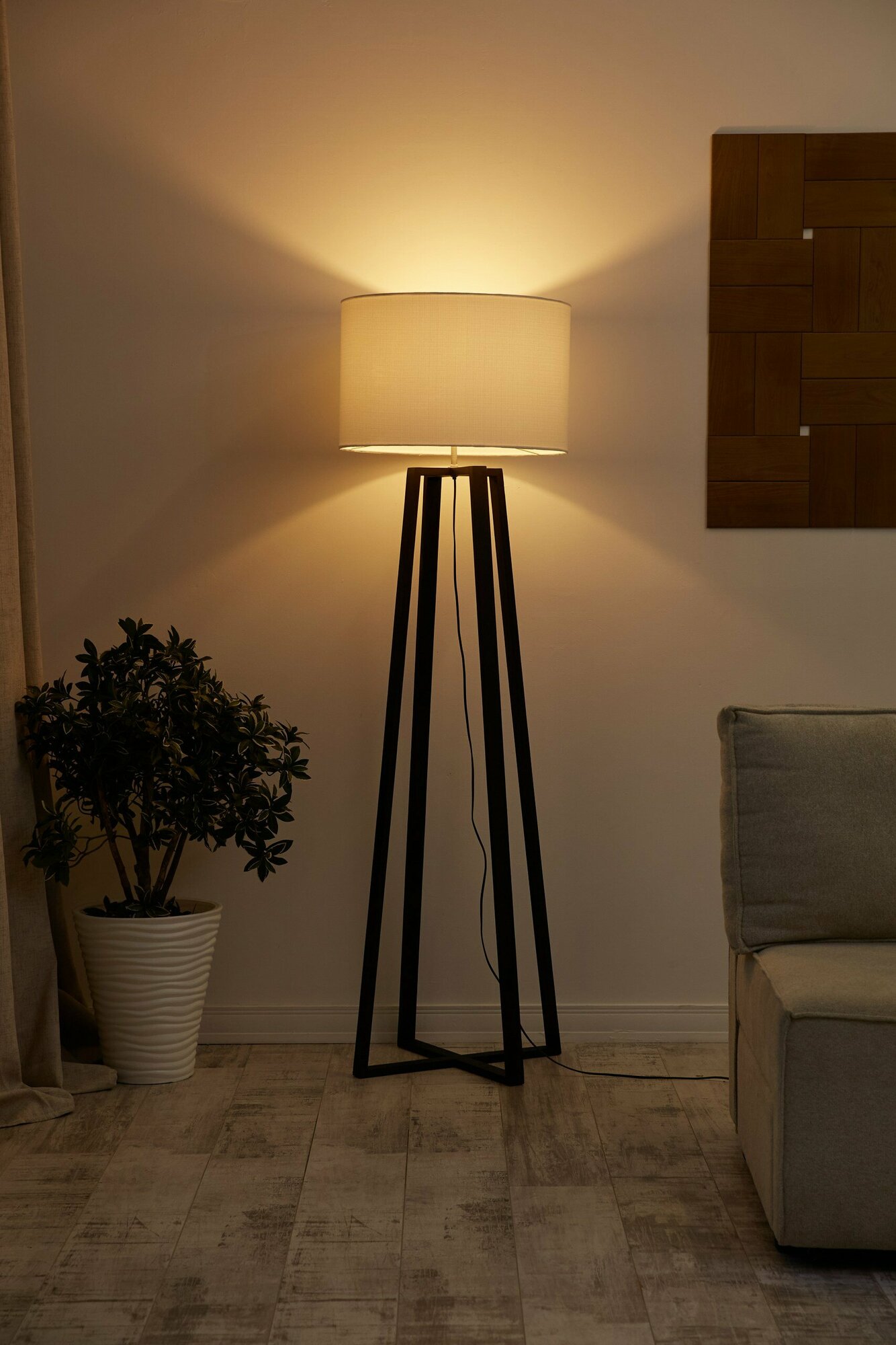 Светильник напольный/ Торшер "Гала"/ Светильник интерьерный/ основание светло-коричневое, черный абажур
