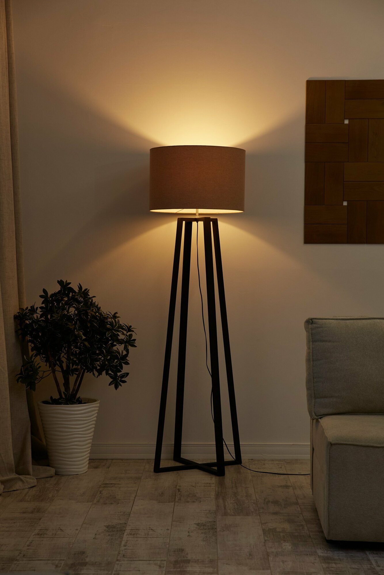 Светильник напольный/ Торшер "Гала"/ Светильник интерьерный/ основание светло-коричневое, черный абажур