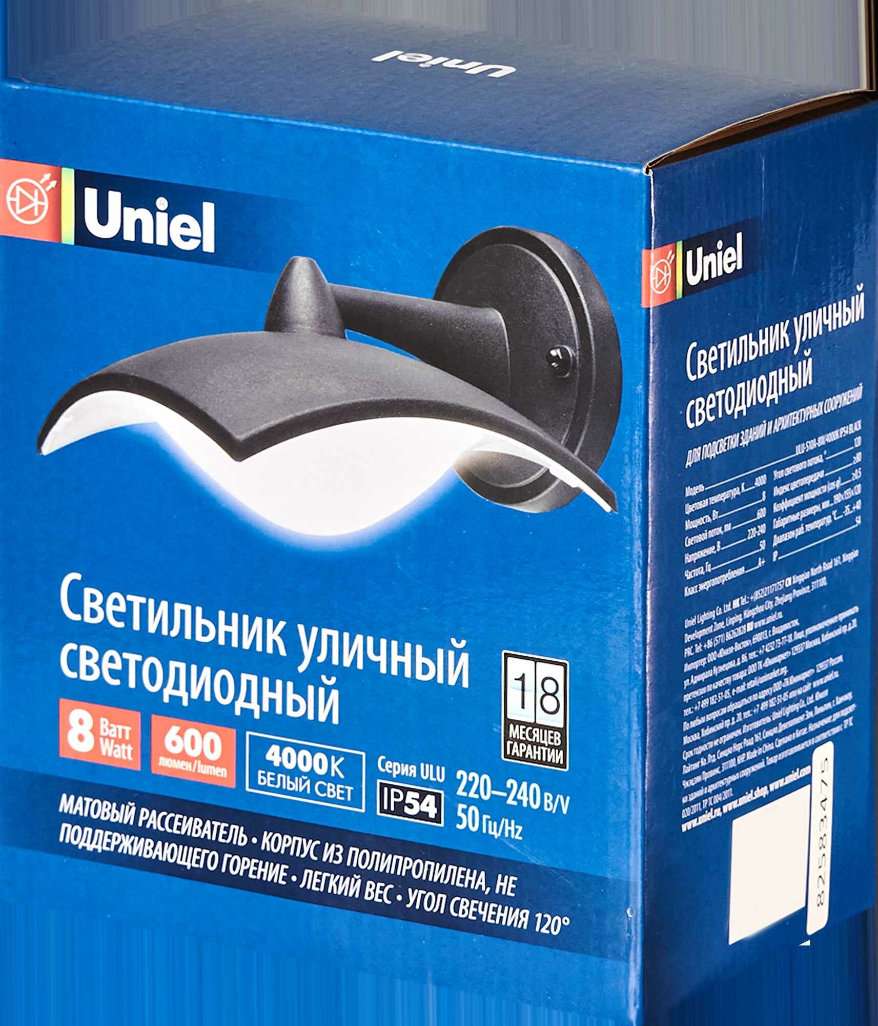 Светильник Уличный Ulu-s10a 8W/27E Black Светодиод 4000К Архитектурный Накладной IP54 Uniel .