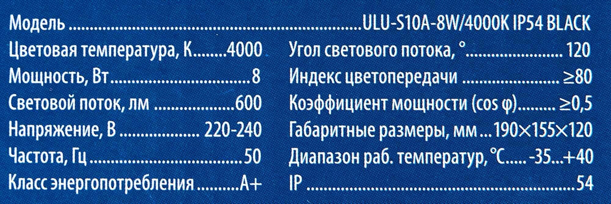Светильник светодиодный уличный ULU-S10A-8W-4000K IP54 BLACK Архитектурный накладной. Белый свет 4000K. Корпус черный. UL-00005403