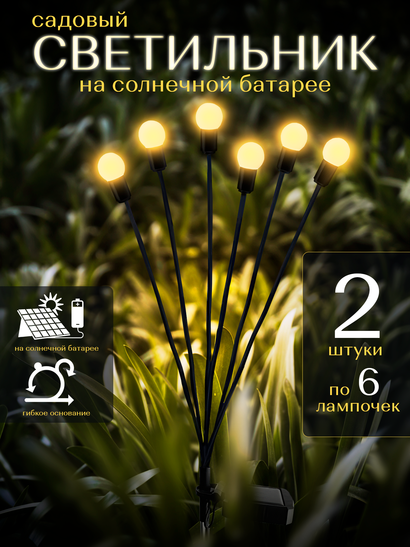 СохранитьСветильник уличный на солнечной батарее для дома и сада 6 ламп теплый свет (Черный) х 2 шт интересное: