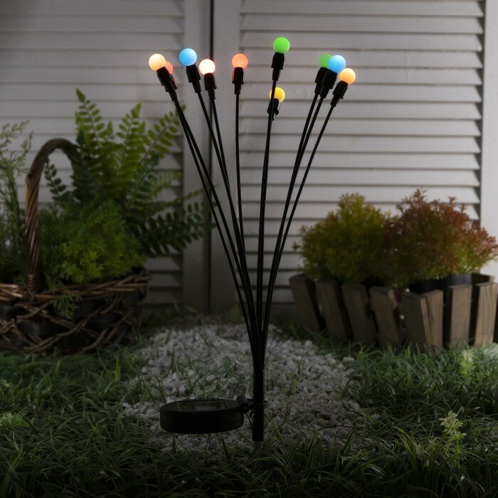 Купить Светильник уличный на солнечной батарее для дома и сада 10 ламп цветное свечение (Черный) х 5 шт