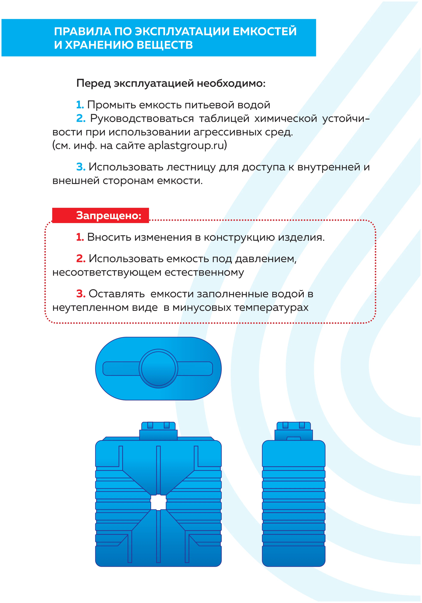 | Дополнительная информация | емкость не предназначена для работы под избыточным давлением |