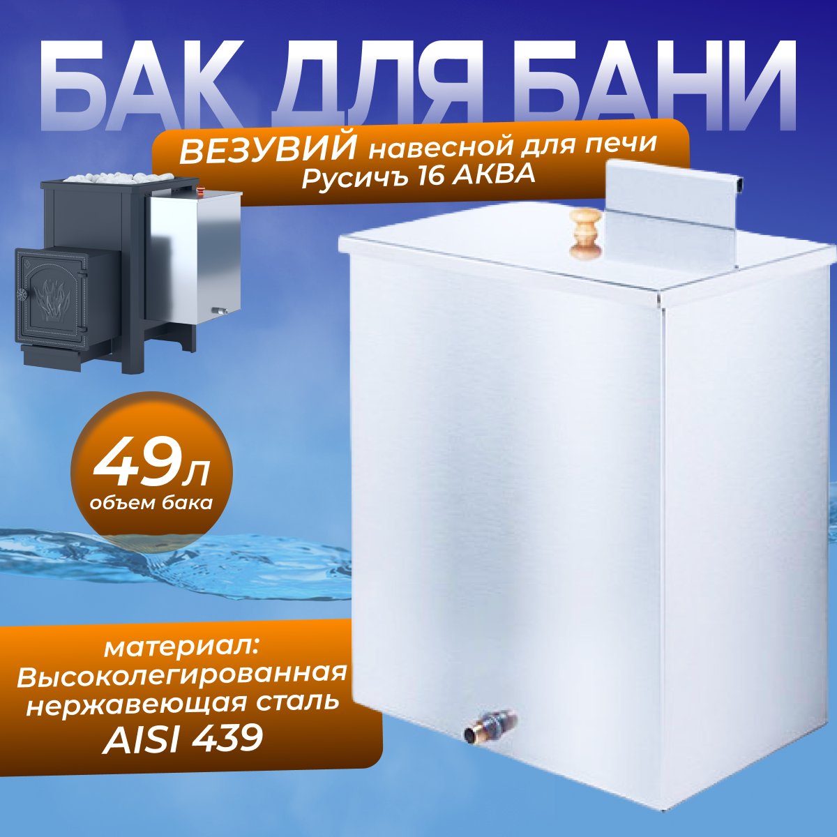 Везувий Бак нержавеющий навесной Везувий (AISI 439) для печи Русичъ 16 «аква»(49 литров)
