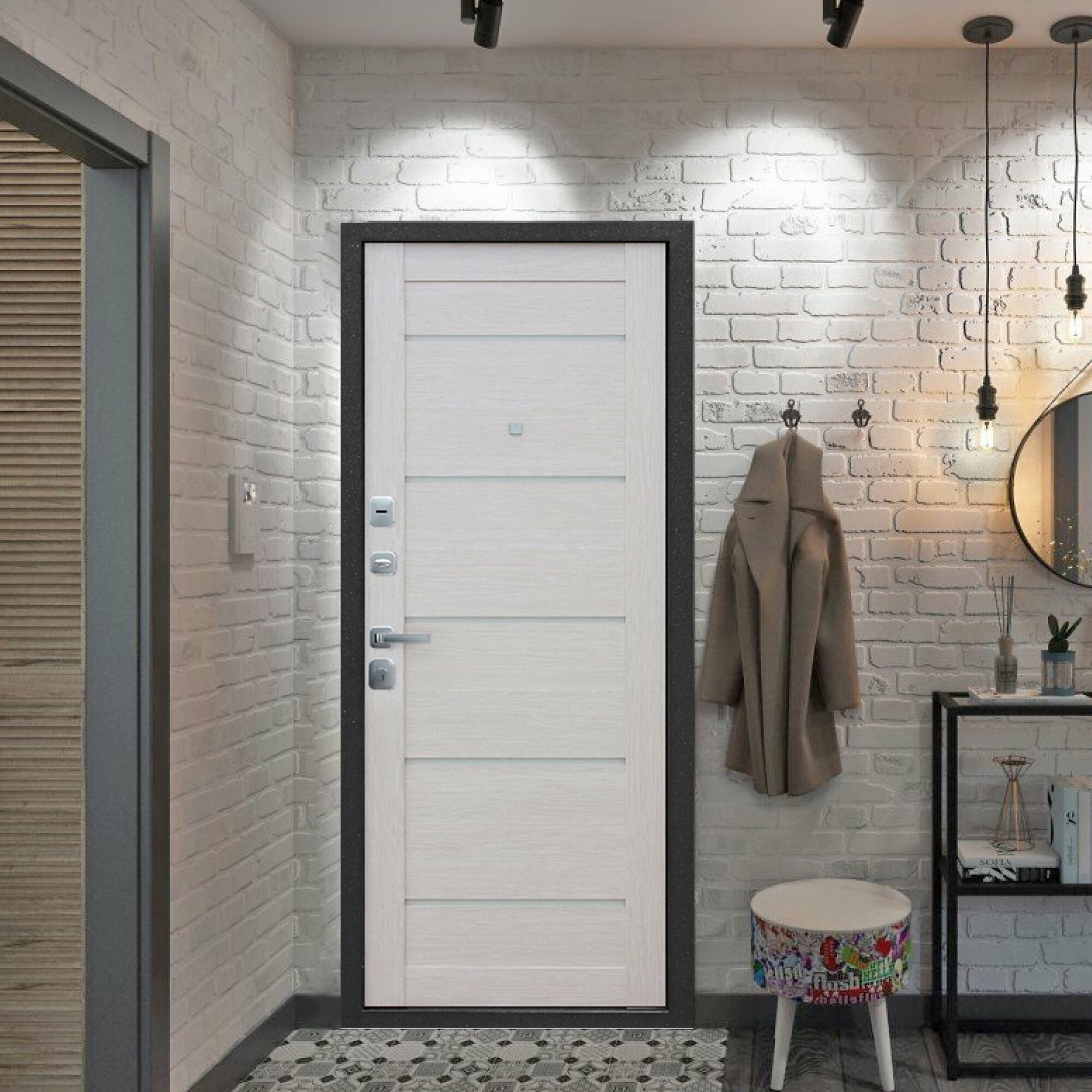 Входная дверь Labirint Лайн WHITE с зеркалом Фацет 960x2050, открывание левое
