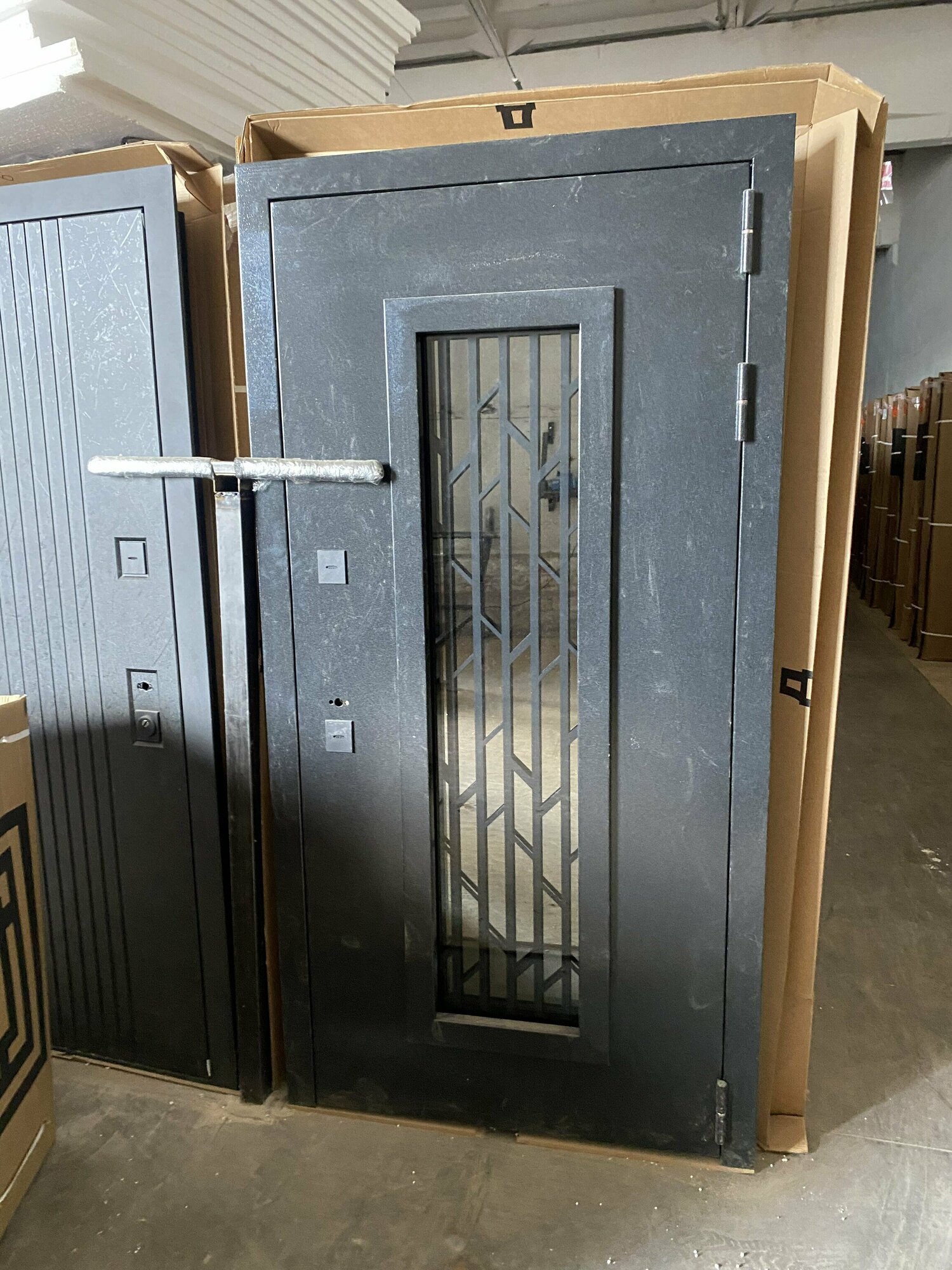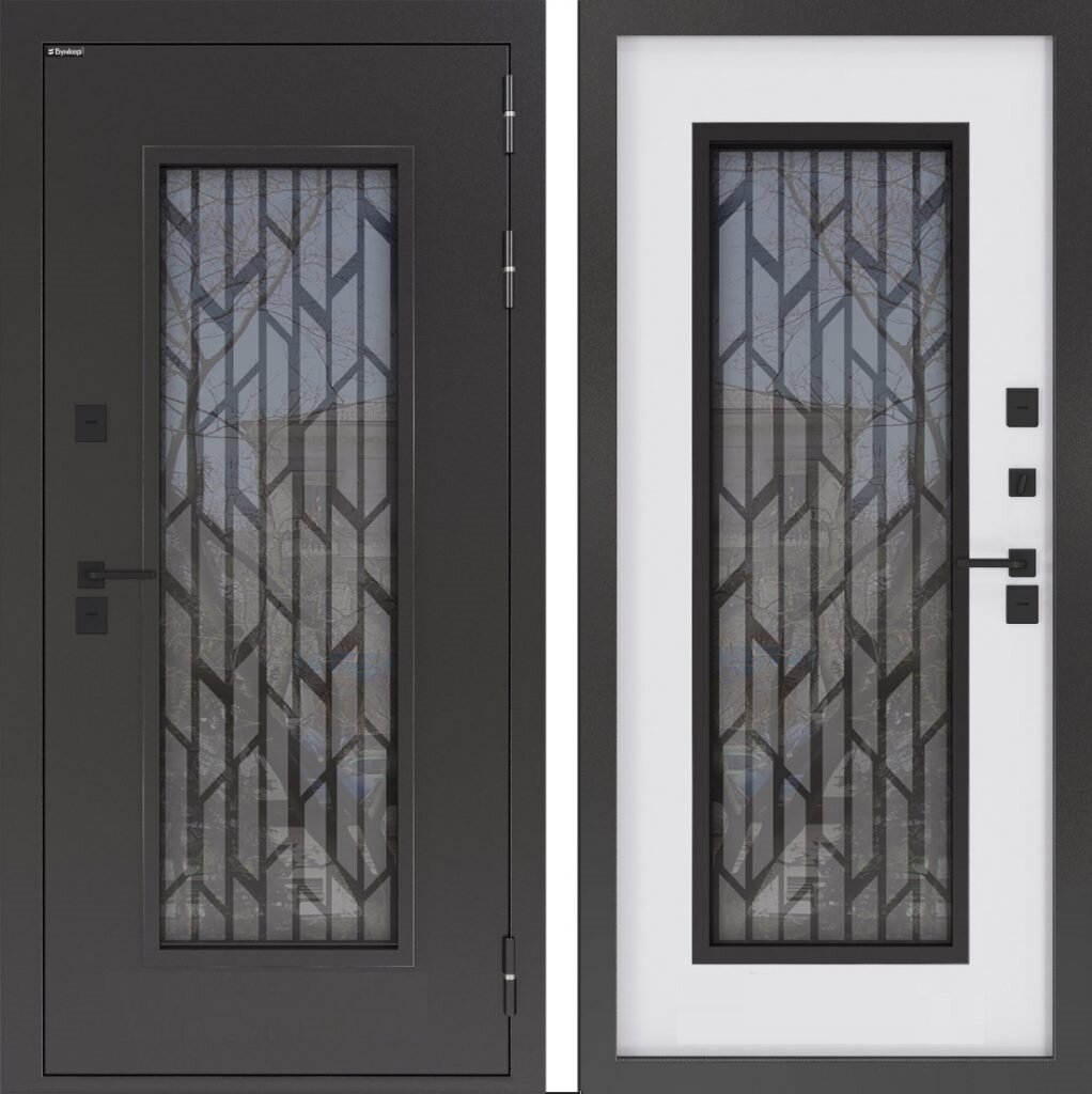 Входная уличная дверь с терморазрывом BN-11 со стеклом и решеткой, размер по коробке 960х2050 правая