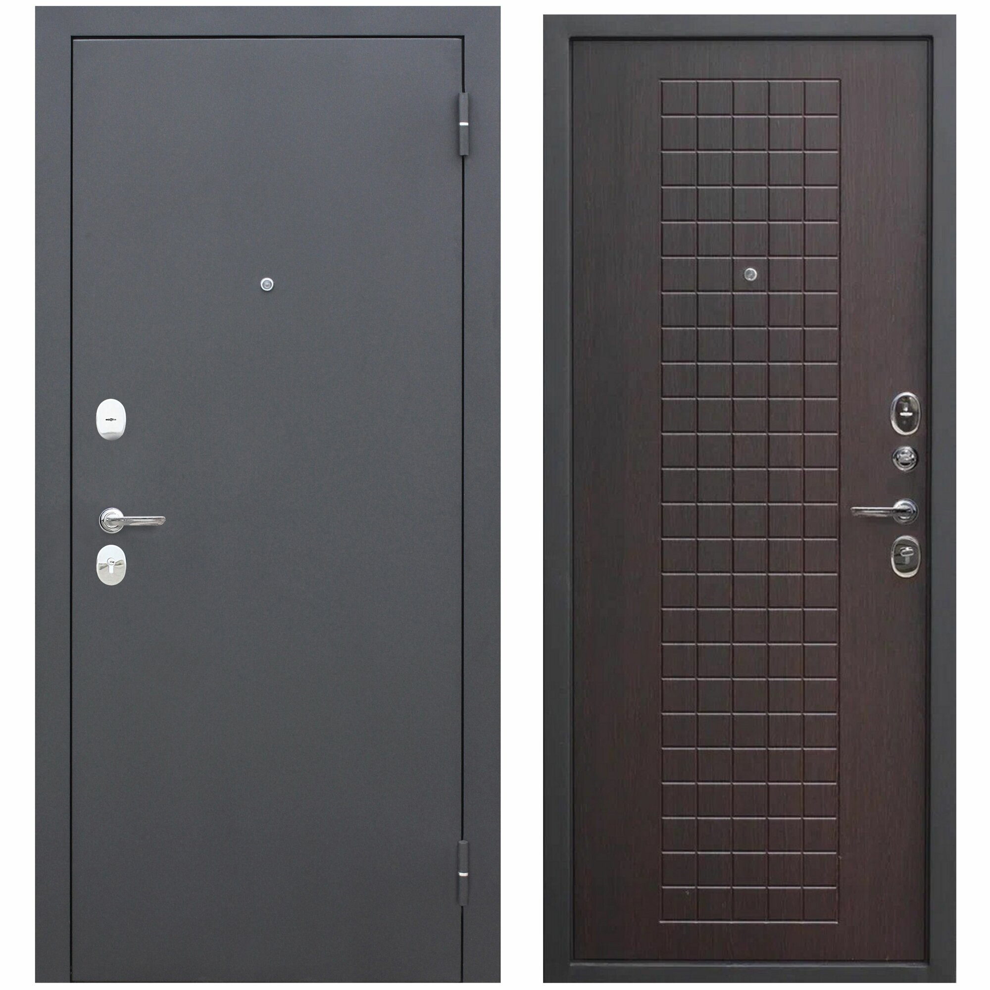 | Комплектация двери | броненакладка / глазок / задвижка / замок / петли / противосъемные штыри / ручки / эксцентрик |