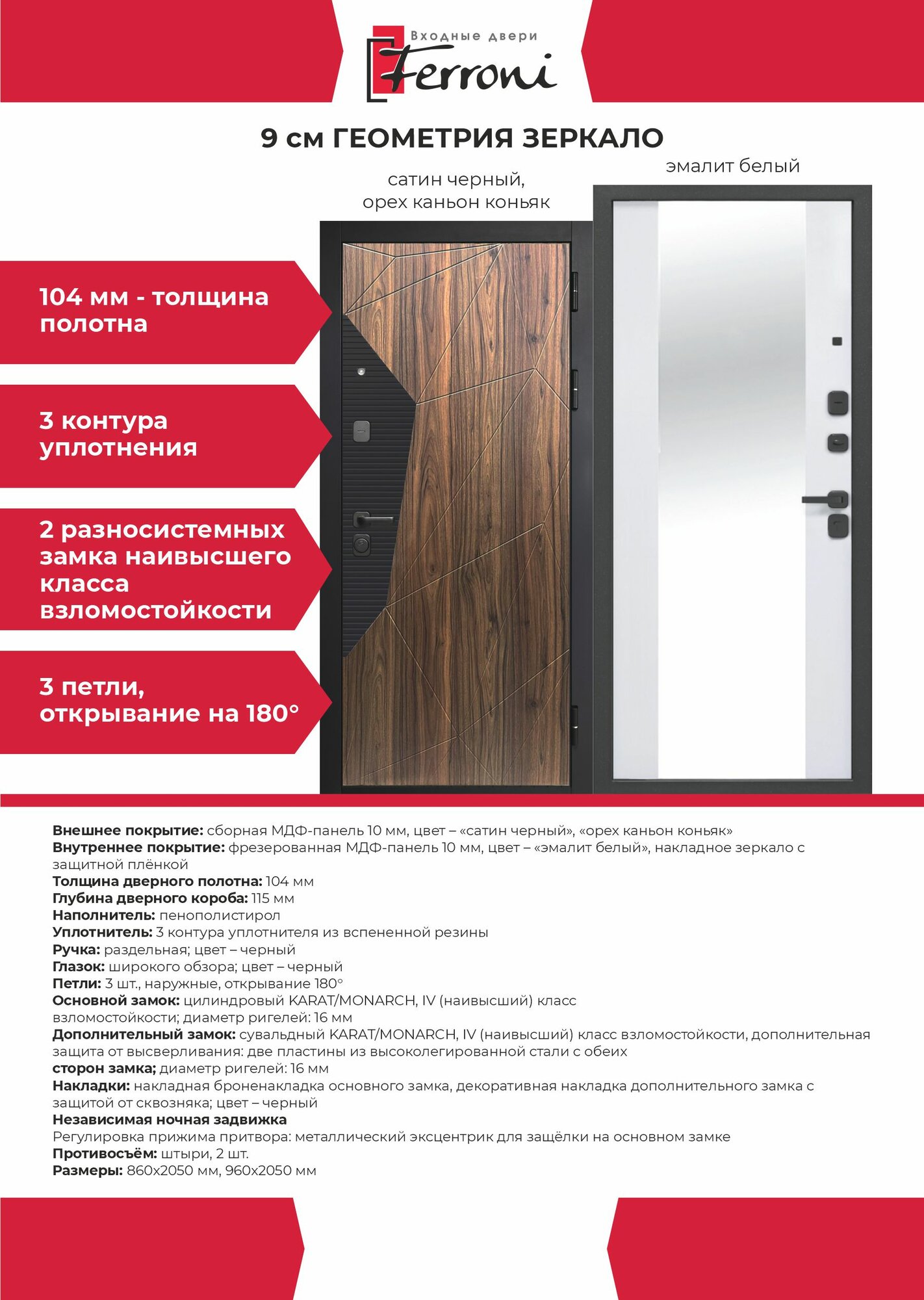 Входная дверь Ferroni 9 см Геометрия Эмалит Белый Зеркало (860мм) левая интересное: