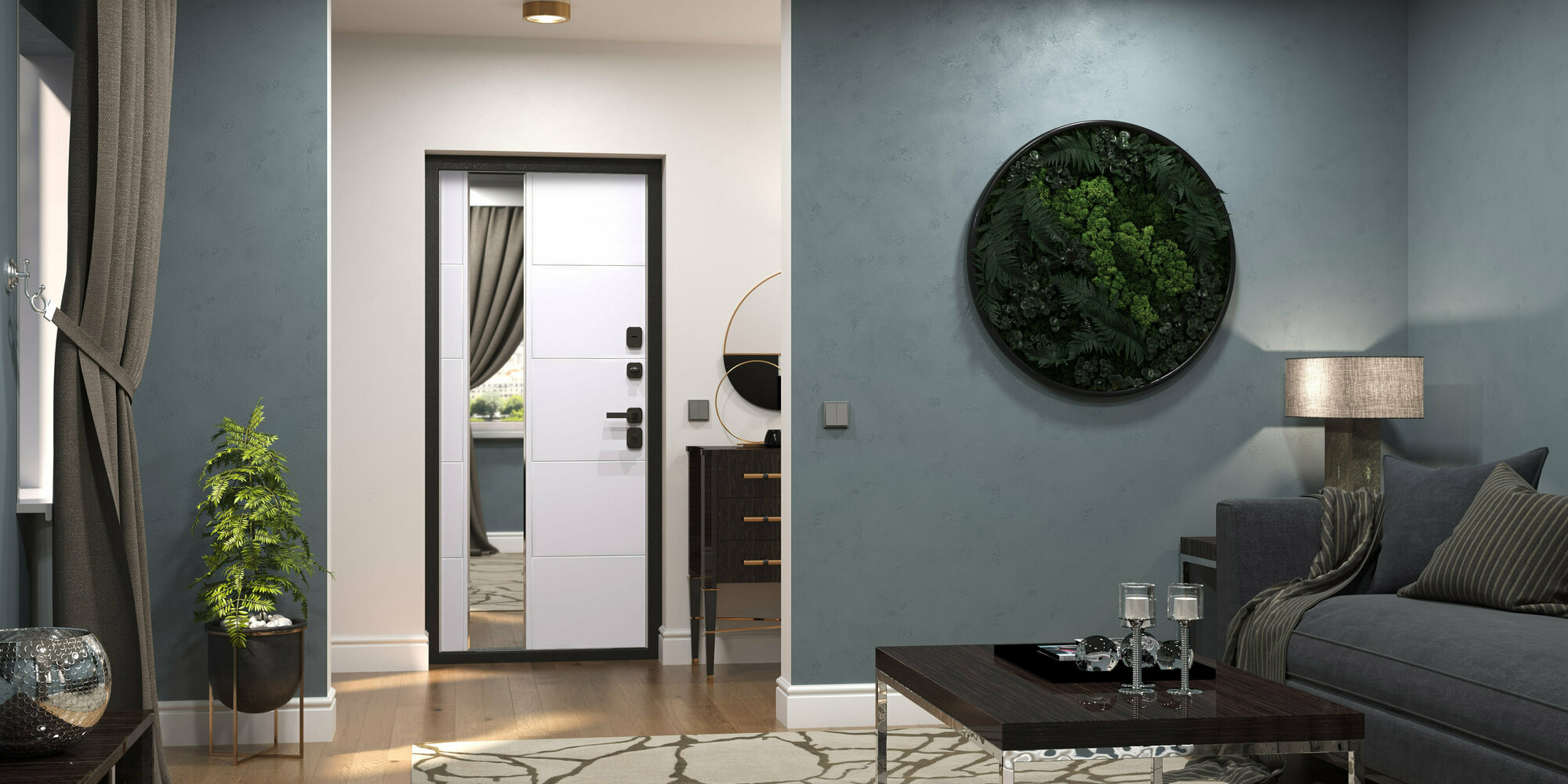 Входная дверь Labirint Лайн WHITE с зеркалом Фацет 960x2050, открывание левое