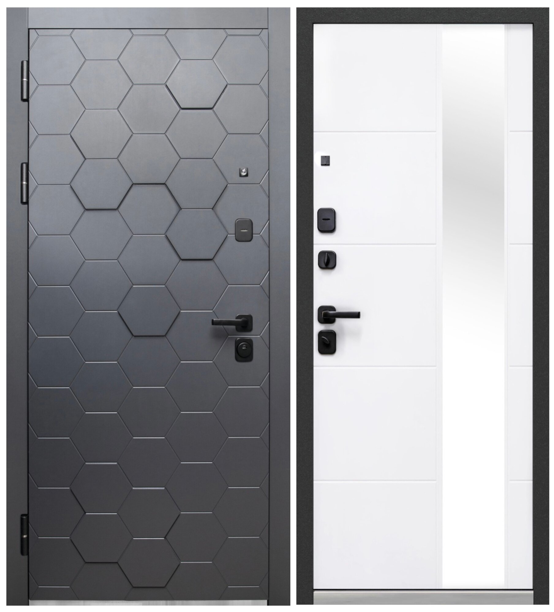 Входная дверь Labirint Лайн WHITE с зеркалом Фацет 960x2050, открывание левое