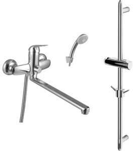 Смеситель для ванной с длинным поворотным изливом и душевой лейкой, шланг 1.5м в комплекте (Lemark LM1251C)