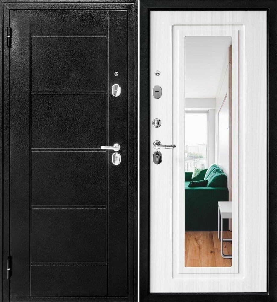 Входная дверь форпост модель 7755 Зеркало лиственница белая 860х2050 Левая интересное: