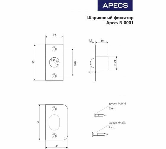 Шариковый фиксатор Apecs R-0001-CR (хром)