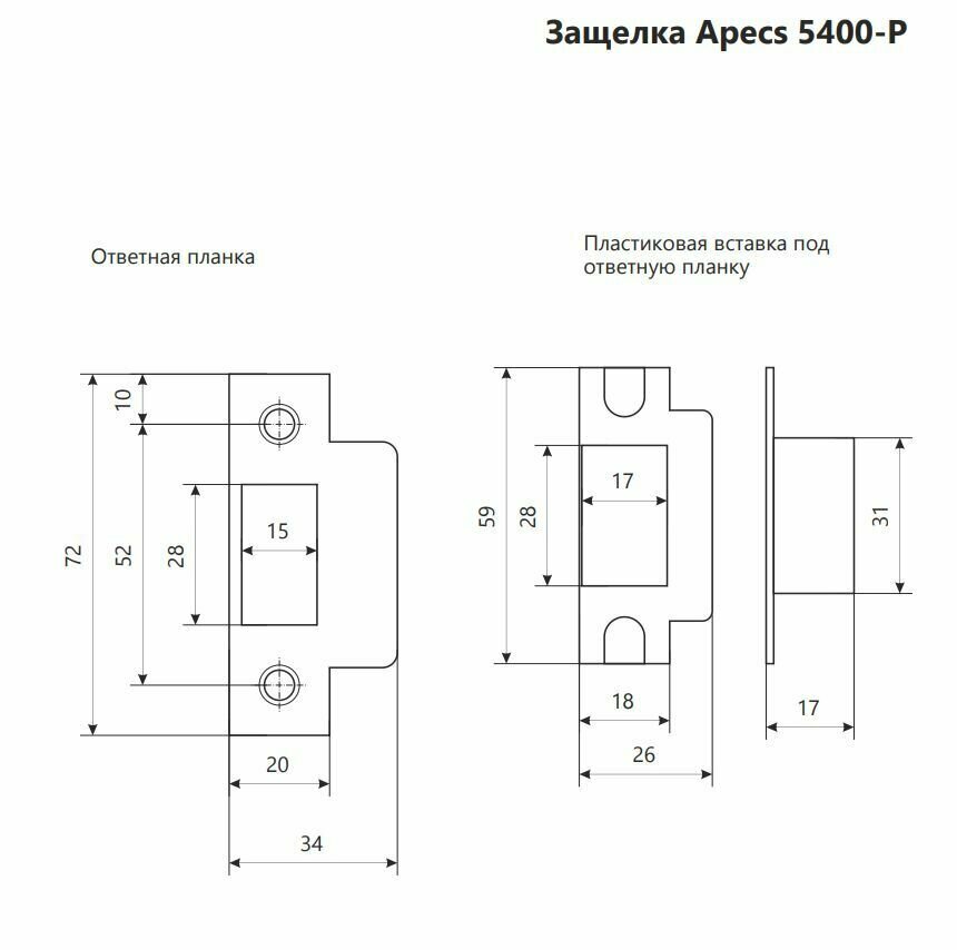 Защёлка врезная Apecs 5400-P-GRF 31268